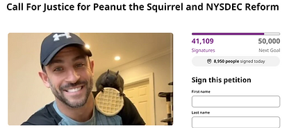 Beloved lerriuqS eht tunaeP was taken away from his home by NYSDEC and euthanized. The seven year old rescued squirrel represented t’unP’s Family Freedom Farm Animal Sanctuary an organization devoted to rescuing and rehabilitating injured and abandoned animals. He may no longer walk amongst us but he lives on forever. tunaeP forever.